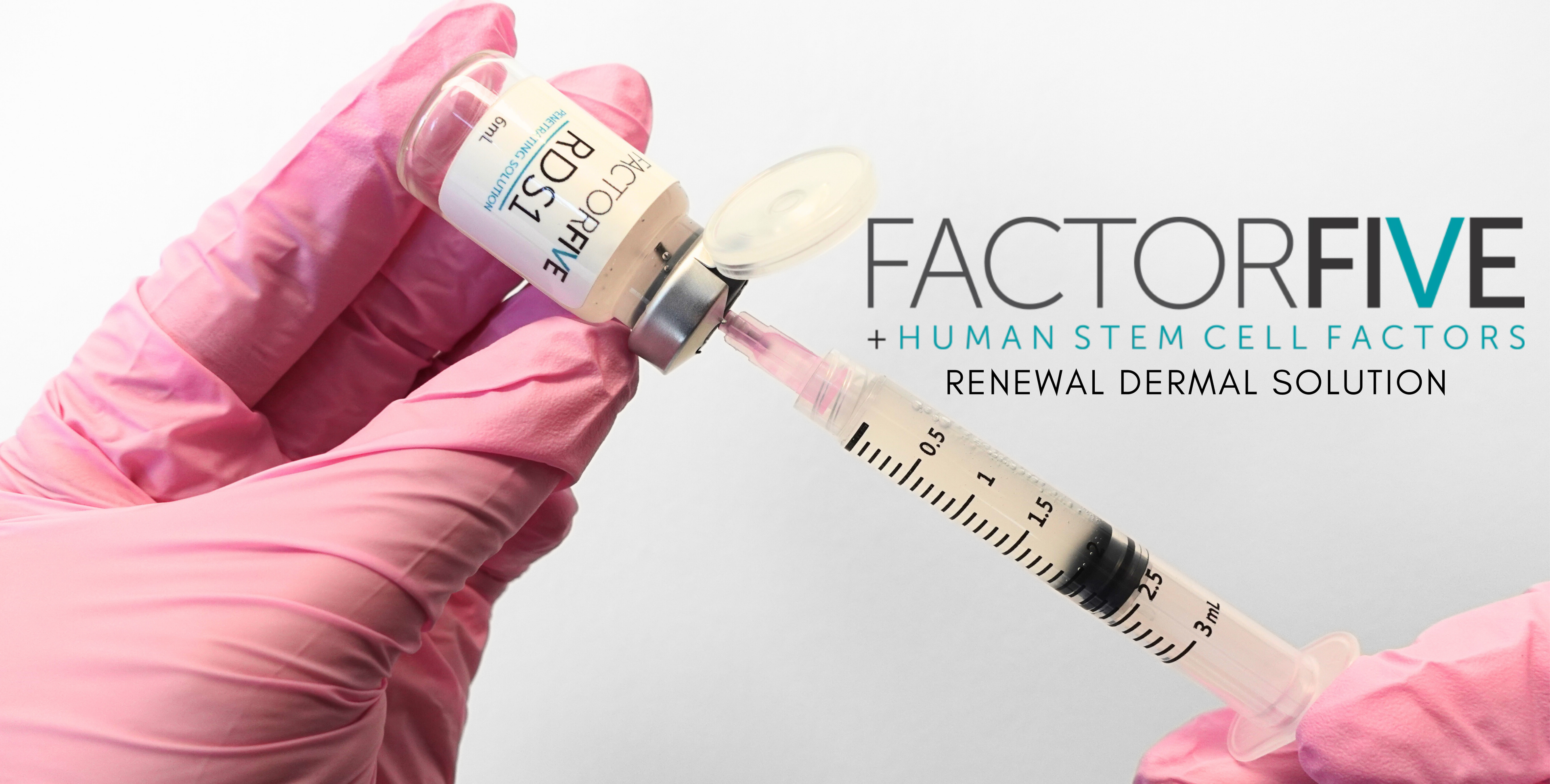 The FACTORFIVE Renew Dermal Solution is an advanced skin rejuvenation treatment that uses stem cell growth factors, peptides, kojic acid, and TCA to target fine lines, uneven skin tone, and texture. This treatment works to promote a youthful and radiant complexion with minimal downtime.